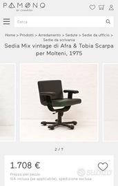 Poltrone da ufficio vintage originali Mix, progettate da Afra Scarpa e Tobia Scarpa nel 1975. In vendita set composto da 8 pezzi. Produzione: Italia. Il modello rappresenta un chiaro esempio del modernismo italiano degli anni ’70. Le poltrone si distinguono per la geometria rigorosa, la logica architettonica della struttura e il comfort della seduta. Il profilo essenziale e l’alta qualità dei materiali le rendono perfette sia per un ufficio contemporaneo sia per interni in stile Mid-Century Modern. Prodotte da Molteni & C, queste poltrone sono state realizzate nel tempo in diverse varianti (rivestimenti e finiture differenti), mantenendo sempre l’inconfondibile linguaggio progettuale degli Scarpa. Caratteristiche: Design: Afra & Tobia Scarpa Modello: Mix Anno: 1975 Quantità: 8 pezzi Paese di produzione: Italia Produttore: Molteni Stile: Mid-Century Modern / Italian Modern Condizioni: Condizioni vintage coerenti con l’età e l’utilizzo. Possibili naturali segni del tempo — leggera patina, piccoli segni superficiali o lievi tracce d’uso. tags: Charles Eames, Ray Eames, Herman Miller, Eames Soft Pad, Eero Saarinen, Knoll, Executive Chair, Arne Jacobsen, Fritz Hansen, Oxford Chair, Mario Bellini, Cassina, Cab Chair, Osvaldo Borsani, Tecno, P40, Vico Magistretti, Oluce, Vertebra Chair, Ettore Sottsass, Olivetti, Synthesis Chair, Gae Aulenti, Poltronova, Locus Solus, Joe Colombo, Kartell, Universale Chair, Franco Albini, Knoll, Albini Office Chair, Giancarlo Piretti, Castelli, Plia Chair, Richard Sapper, Knoll, Sapper Office Chair, Jorge Pensi, Amat-3, Toledo Chair, Alberto Meda, Vitra, Meda Chair, Antonio Citterio, Vitra, AC4 Chair, Marco Zanuso, Arflex, Regent Chair, Hans J. Wegner, PP Møbler, PP201, Pierre Jeanneret, Chandigarh Project, Chandigarh Office Chair, Poul Kjærholm, Fritz Hansen, PK22, Cini Boeri, Knoll, Gradual Chair