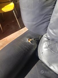 Due poltrone in vera pelle comodissime con ribalta per gambe una è perfetta usata pochissimo l'altra necessita una riparazione sul bracciolo sinistro se intetessati non esitate a chiamare per avere informazioni. Cell.3346446345