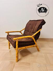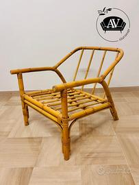 Coppia di poltrone vintage anni ’70/’80 in bambù e rattan intrecciato.