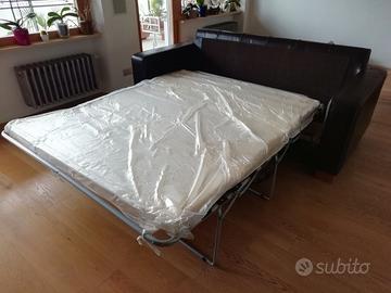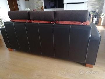 Come da foto vendo divano letto poltrone sofà modello Caprifoglio 3 posti, struttura rivestita in pelle testa di moro e seduta/schienale in cotone di color ruggine, in ottime condizioni, utilizzato sempre con copri divano.