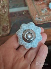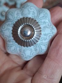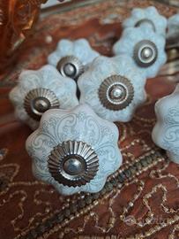 vendo set 10 pomelli ceramica per mobili..in ottime condizioni..sono stati tolti da un mobile..larghezza 4.5 cm..colore bianco e grigio chiaro..bellissimi..prestigiosa marca Clayre & Eef