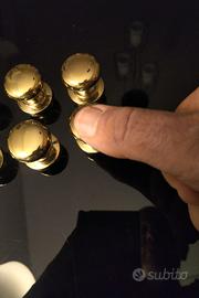 Otto pomelli di metallo pesante color ottone, diametro un pollice. Usati ma senza particolari segni di usura, unico neo nella parte posteriore - una volta montati non si vede - c'è della vernice. Ma strofinando, viene via. Completi di viti
