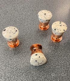 Realizzati con testa in resina e base in metallo finitura rame/rosé o dorata , ideali per rinnovare cassetti, armadi, comodini o mobili da cucina.
