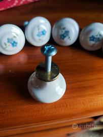 nove pomelli con fondo bianco e fiori azzurri in ceramica