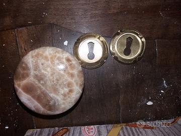 Set composto da 13 coppie di pomelli in ottone e marmo complete di borchie per serrature ed una maniglia simile tutto di marca BAL + 15 serrature marca Etna (di cui 3 nuove). I pomelli e le serrature sono adatti a porte interne, il tutto è usato ed è in buone condizioni.