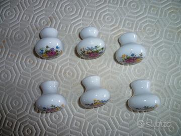 Pomelli (6) in porcellana bianca con decorazioni floreali per mobili cucina e bagno diametro 2,5 altezza 2,4 nuovi 15 euro oppure 20 euro compresa spedizione con pacco tracciato