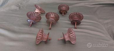 Lotto pomelli completi di vite e contronvite, in vetro degli anni 50 - vetreria Toscana anni 50. Tenuti molto bene, formato da n. 5 pomelli da 6 cm di diametro e n.2 pomelli da 5 cm di diametro.