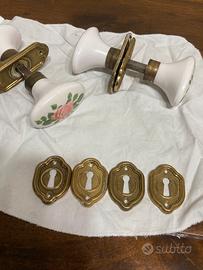 Pomelli per porte interne in ceramica con disegni floreali, coperture delle maniglie e delle chiavi in ottone , da segnalare una vella lucidata, i pomelli in ceramica non presentano segni particolari da segnalare.