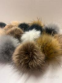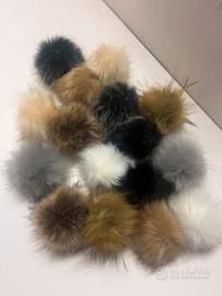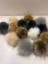 Pon pon di pelliccia ecologica , 16 pezzi in 8 colori, 10 cm per cappelli, sciarpe, borse e portachiavi. Nuovi. Con asola in elastico