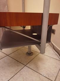 Mobile Tv Porada in ciliegio modello Ubiqua, mobile porta tv in legno noce canaletto, con ripiani e vano a serrandina. Mobile con fissaggio a parete tramite staffa in metallo.