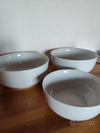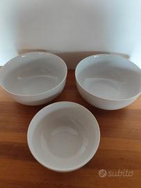 N. 2 ciotole-insalatiere porcellana bianca diam. 21 cm. + N. 1 ciotola-insalatiera porcellana bianca diam. 17 cm. da decorare o da utilizzare senza decorazioni.