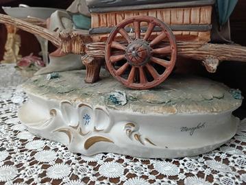 Statuina in porcellana di Capodimonte raffigurante un suonatore di organetto. misure lunghezza 25cm