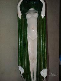 Tonalità colore principale: verde esterno, bianco interno; elementi in piccolo fuoco color rosa in alcune zone del corpo, mani, seni, ombelico, ginocchia e piedi.