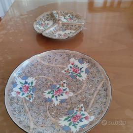 vendo rari e raffinati piatti originali fruttiera e antipastiera con decorazione floreale di Fischer Vilmos 1890