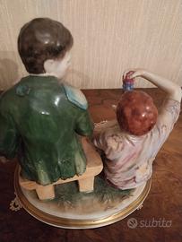 Il soggetto sono due ragazzi che mangiano melone, una scena di Sauthier de Bilbao creata nel 1940 da Porfirio Sanchez Sauthier con una porcellana di ottima qualità.