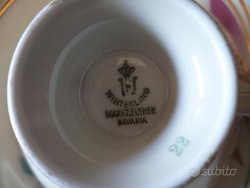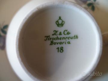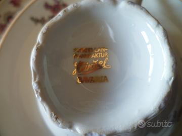 Vendo lotto 4 (quattro) tris in fine porcellana tedesca, vintage, composto da tazza cm.10 + piattino cm.15 + piatto dolce cm.20 :