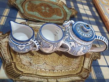 Set teiera, dosatore con misurino e caraffa latte di porcellana.