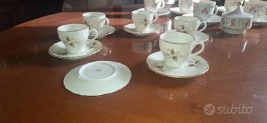 Servizio Richard Ginori (Manifattura Italiana): Elegante set con decori floreali raffinati e finiture in oro zecchino. Include teiera, caffettiera, zuccheriera, lattiera e diverse tazzine con piattini coordinati.