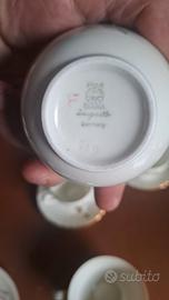 Servizio Bavaria (Germania): Porcellana bianca di altissima qualità con delicati motivi floreali rosa. Composto da caffettiera alta, tazze da tè/consommé e piattini.