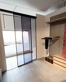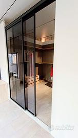 Porta scorrevole modello Dea dimensione cm.180x 260. Struttura in alluminio finitura modello ghisa con 2 ante in vetro Fumè. Porte disponibile su misura al centimentro, in svariate dimensioni e finiture (laminato, specchio, legno).Contattateci per un preventivo Trasporto e montaggio da valutare con possibilità ritiro cliente. Trattasi di prodotto di outlet, visionabile e in PRONTA CONSEGNA.