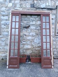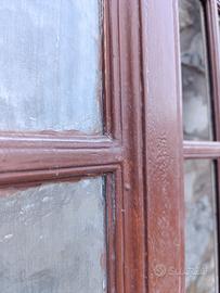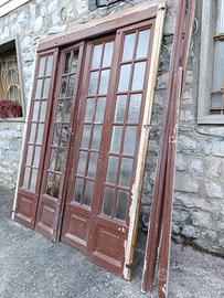 Grande porta a quattro ante in legno e vetri stile inglesina. Misure: Altezza 214. Larghezza 168. Larghezza doppia interna apribile 80 passaggio porta. Il legno è in ottime condizioni perché è sempre stata conservata al coperto in ambiente asciutto.
