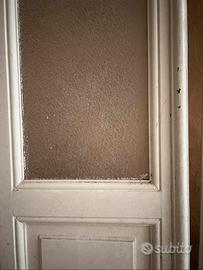 Serranenti in legno e vetro martellato, in stile vecchia milano in buone condizioni. Da restaurare per adattare ad una casa in stile moderno. Misure: Larghezza senza perno 46cm Larghezza con perno 47,5cm Altezza 215cm (2)