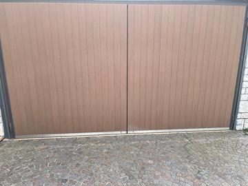 vendo porta a battente in alluminio e acciaio dimensione esterne telaio larghezza 3800 altezza 2040 motorizzata da FAAC 400 a braccio composta da 2 operatori oleodinamici completa di quadro comando, ricevente, trasmittente, pulsantiera interna, lampeggiante e elettro serratura prezzo 850 Euro, disponibili foto tel. 348 7824007