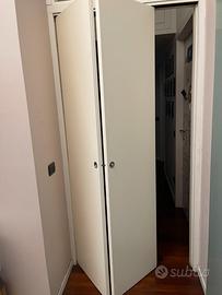 La porta è in buono stato, solida e funzionale, ideale per corridoi, ripostigli, cabine armadio o ambienti con poco spazio, grazie all’apertura salvaspazio.