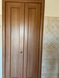 Vendesi elegante porta a libro (apertura a soffietto) in finitura legno chiaro/noce, ideale per chi ha necessità di ottimizzare gli spazi senza rinunciare allo stile. Grazie al suo sistema di apertura, è la soluzione perfetta per corridoi stretti, ripostigli, bagni o lavanderie. Completa di maniglia a pomello in ottone/bronzo, cerniere robuste e telaio perimetrale coordinato. La porta ha un’altezza di 218 cm ed una larghezza di 80. RITIRO IN LOCO, NON SPEDISCO!!