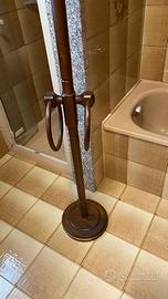 Vendo porta abiti in legno tinta noce, per ingresso o toilette, utilizzabile per accappatoi e asciugamani.
