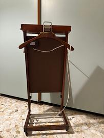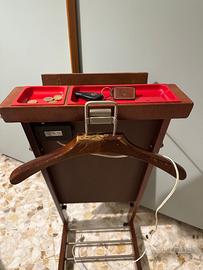 Propongo porta abiti da camera da letto, prodotto dalla ditta Fratelli Reguitti negli anni 50 circa. Realizzato in legno con dettagli in stile quali ganci e svuotatasche, poggiagemelli e appendigiacca estraibile.Caratterizzato da un sistema elettrico brevettato per tenere in piega i pantaloni. Come è facile osservare dalle foto allegate, il servomuto è in ottime condizioni, pronto per essere utilizzato. Leggerissimi segni del tempo.