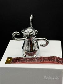 Elegante porta anelli a forma di scimmia, realizzato in metallo con finitura argentata.
