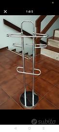 Elegante, robusto Porta asciugamani- telo doccia- salvietta, a piantana, con base circolare, in acciaio inox cromato, argentato, resistente alla ruggine.