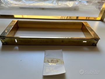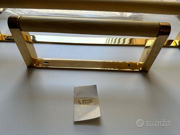 Coppia di porta asciugamani di design da bagno in ottone pesante finitura oro con asta in legno vero finitura opaca, marca VIP, Made In Italy, provengono da un fondo di magazzino, qualità di altri tempi, nuovi in confezione originale, fissaggio a parete, misure L 58x p 12 cm e L 30x p 12 cm , venduto visto e piaciuto, NIENTE DOMANDE DA PERDITEMPO O CURIOSI, se c’è l’annuncio è ovvio che è disponibile, non lo chiedete non rispondo