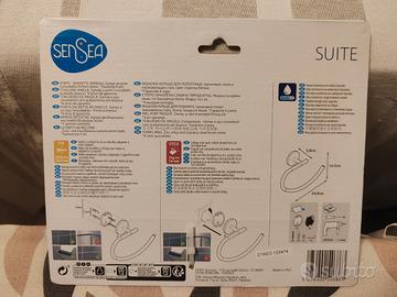 Portasciugamani a gancio, da fissare alla parete o alla mattonella con adesivo o con viti e tasselli. Materiale: Zamac e acciaio inossidabile.