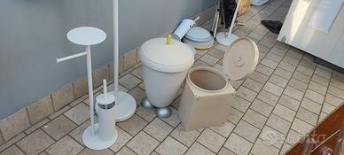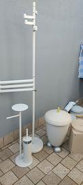 Piantana porta asciugamani con appendi accappatoio, porta spazzatura per armadietto, scopino con porta carta igienica, bidone rifiuti Guzzini, il tutto in ottimo stato come nuovo.
