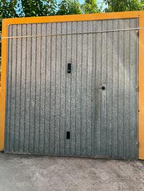 Vendo porta basculante manuale per cambio porta. Usata ma perfettamente funzionante. Realizzata in lamiera zincata con porta pedonale. Dimensioni luce passaggio 260 x 260 cm
