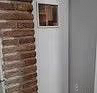 Porta battente in legno massello con vetro leggermente brunito. Ottima in cucina. Misure della porta 197x 77, spessa 4,5 cm. Il cardine della porta misura 202, largo 6 cm, spessore 4,2 cm. Spazio totale per installazione porta larghezza 83 cm.