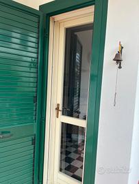 Porta d'ingresso in legno bianco con vetro + zanzariera.