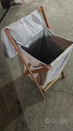 Porta biancheria Foppapedretti in buone condizioni con contenitore in tessuto sfoderabili e lavabile. Il tessuto non è del colore originale, è stato colorato di grigio in lavatrice. Misure: h 84 cm, profondità 45 cm lato 40 cm.