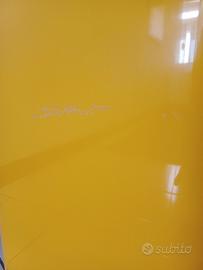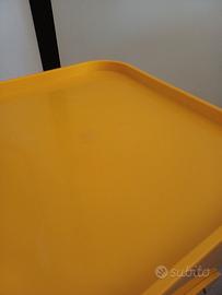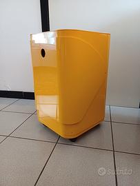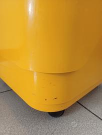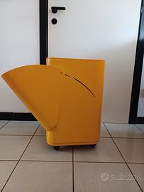Elegante porta biancheria firmato Anna Castelli per Kartell, in plastica gialla. Compatto e facilmente spostabile grazie alle ruote. Dimensioni: 37,5 x 37,5 cm, altezza 60,5 cm (ruote incluse) Condizioni: qualche segno di usura sulla plastica; mancano i chiodini laterali (sostituibili)