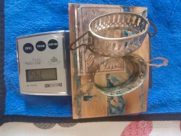 vendo porta bicchierini in argento 800 più placche ag 925. gr 74.5