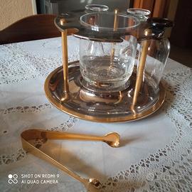 con cestello per il ghiaccio in vetro con relativa pinza color oro