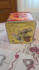 Stupenda scatola per biscotti in latta della Lazzaroni & C di Saronno.