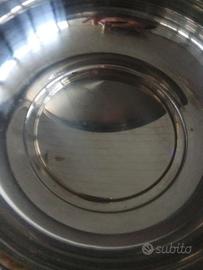 in acciaio inox,con rifinitura in oro,porta bon bon,biscottiera o centro tavola in acciaio inox