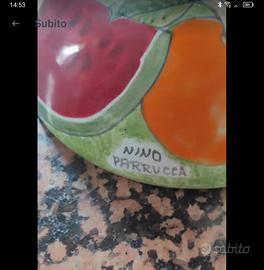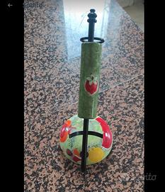 nuovo, perfetto, porta bottiglia in ceramica artigianale dipinta a mano e ferro battuto. integro. Nino Parrucca. spedizione in tutta Italia.