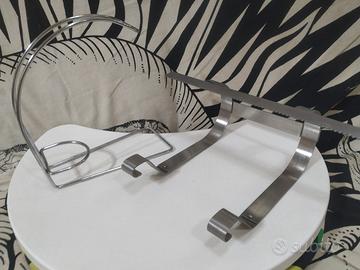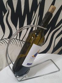 Elegante portabottiglie singolo + porta rotoli carta assorbente in acciaio satinato con ganci.