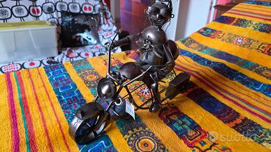 porta bottiglia in ferro raffigurante motociclista