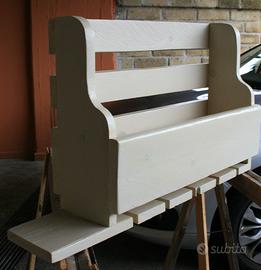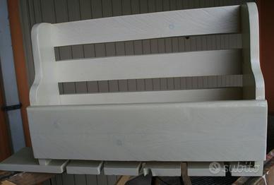 vendo porta bottiglie e calici in legno con mensola per libri o oggetistica da enoteca. Colore bianco anticato. Si valutano offerte