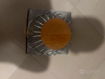 Porta bottiglie elegante in acciaio inox nuovo con base in legno Dimensioni (26 x 24h)
